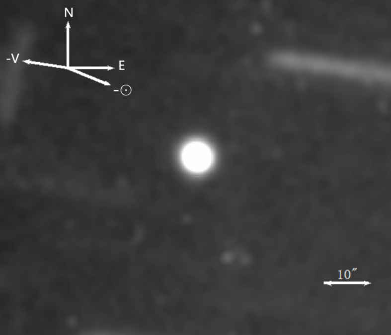 活跃小行星(Active Asteroids)是近年来确认的一类特殊太阳系小天体,具有类似小行星的轨道特征,却又呈现出彗星的视觉特征,如彗发、慧尾或亮度的异常增强等。活跃小行星为地球上水的来源提供了新的线索,也为理解小天体的物质组成、内部结构和演化过程提供了新的机会。(62412)2000 SY178是一颗位于外小行星主带的Hygiea族C型小行星,在2014年4月被偶然发现具有一条类似慧尾的结构(图1,左图)。2000 SY178的轨道半长轴3.153 AU、轨道周期为5.6年,其最近一次过近日点在2024年7月15日。