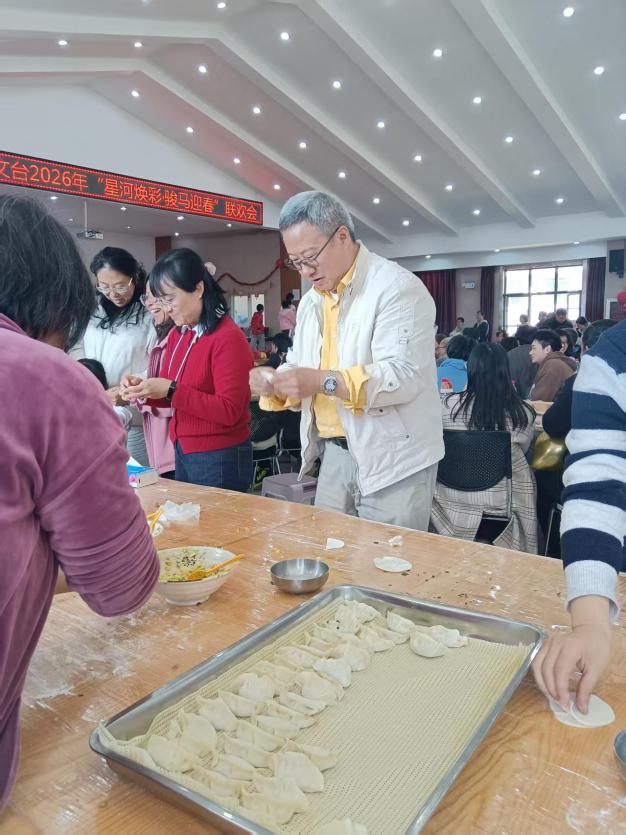 联欢会高光时刻,韩占文院士、林隽研究员倾情献艺,将晚会推向高潮。《You are my sunshine》、《卓玛》两首曲目,歌声婉转动人、饱含深情,赢得全场阵阵欢呼与热烈掌声,再度点燃现场氛围。与此同时,包饺子活动持续升温,职工与青年学子围坐畅谈、手把手传授技巧,在指尖的默契配合中传递温情、凝聚共识,让“团圆奋进、聚力同行”的理念深深扎根每一位云台人心中。