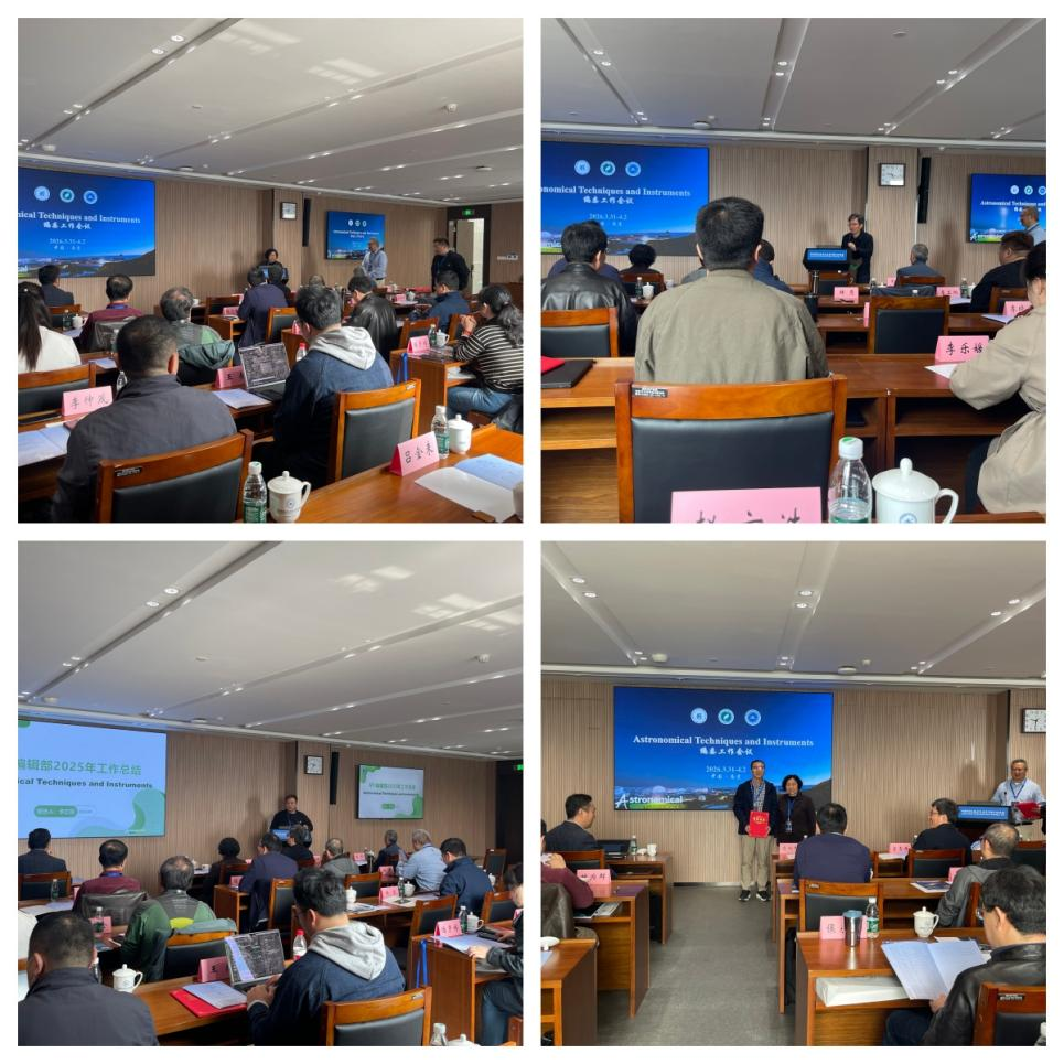 随后,编辑部邀请了部分优秀论文和优秀编委进行了专题报告。姜鹏研究员深入阐述了FAST核心阵项目的总体构想、科学目标和最新进展,杨小虎教授介绍了JUST项目的科学背景及及其取得的重要成果。崔辰州研究员针对大语言模型背景下在投稿、审稿等环节面临的新挑战与应对策略进行了前瞻性探讨。李运博士与刘仁爱博士则分别围绕大型光学望远镜驱动系统、2m环形望远镜系统校准等具体技术难题,分享了创新性研究成果,为期刊未来策划相关专题栏目提供了坚实的学术支撑。